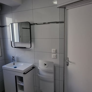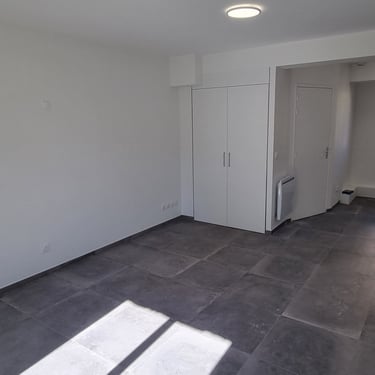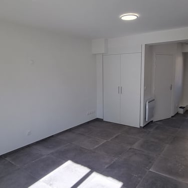 Au 1er étage d'un petit immeuble entièrement rénové : F2 de 33m² composé d'une entrée avec couloir, une pièce principale avec cuisine ouverte entièrement équipée et aménagée ( four, hotte, plaque de cuisson, réfrigérateur, évier, rangements et plan de travail), une salle de douche avec WC et une chambre. Carrelage au sol, chauffage au sol électrique, double vitrage, ballon électrique, interphone, l'appartement et aussi équipé de la fibre. Quartier ultra calme et résidentiel, tout à proximité.